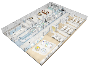 洗嬰室需要結(jié)合新生兒護(hù)理工作的模式和環(huán)境,進(jìn)行整體設(shè)計,注重安全、預(yù)防感染,營造符合嬰幼兒特征的活潑可愛、安全溫馨的場景氛圍。